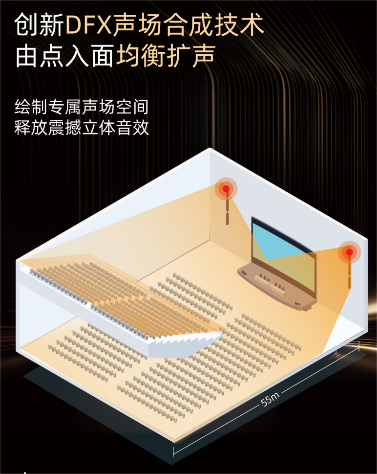 針對(duì)上述方案的痛點(diǎn),世邦(SPON)推出的可調(diào)指向線性陣列音柱為中大型會(huì)議空間提供了更優(yōu)的解題思路。與傳統(tǒng)方案相比,其核心優(yōu)勢在于引入了先進(jìn)的DFX聲場合成技術(shù)。