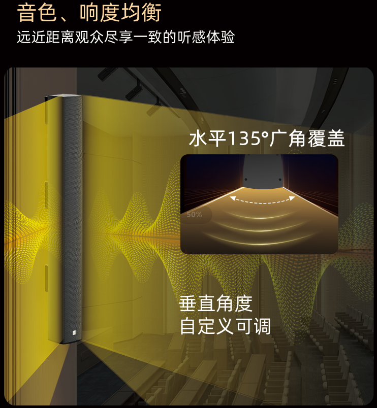 如果說(shuō)建聲是“修路”,擴(kuò)聲就是“造車”。路(聲場(chǎng))修得再平整,若沒(méi)有好車(音響),聲音依然無(wú)法從主席臺(tái)傳至最后一排。在吸音優(yōu)化后的良好聲學(xué)環(huán)境中,通過(guò)專業(yè)音箱、調(diào)音設(shè)備將聲源(如話筒)信號(hào)均勻覆蓋全場(chǎng),彌補(bǔ)自然聲傳播的衰減問(wèn)題。但擴(kuò)聲無(wú)法解決聲學(xué)環(huán)境本身的缺陷,若先側(cè)重?cái)U(kuò)聲而忽視吸音,反而可能放大反射聲和噪聲,加劇聽(tīng)覺(jué)混亂。因此,吸音是保障聲學(xué)質(zhì)量的前提,擴(kuò)聲是實(shí)現(xiàn)聲音均勻覆蓋的補(bǔ)充,二者結(jié)合才能滿足報(bào)告廳的聲學(xué)需求。能量傳遞與均勻覆蓋 擴(kuò)聲系統(tǒng)的首要任務(wù)是提供足夠的聲壓級(jí),解決自然聲衰減問(wèn)題,確保全場(chǎng)聽(tīng)眾都能獲得足夠的響度。