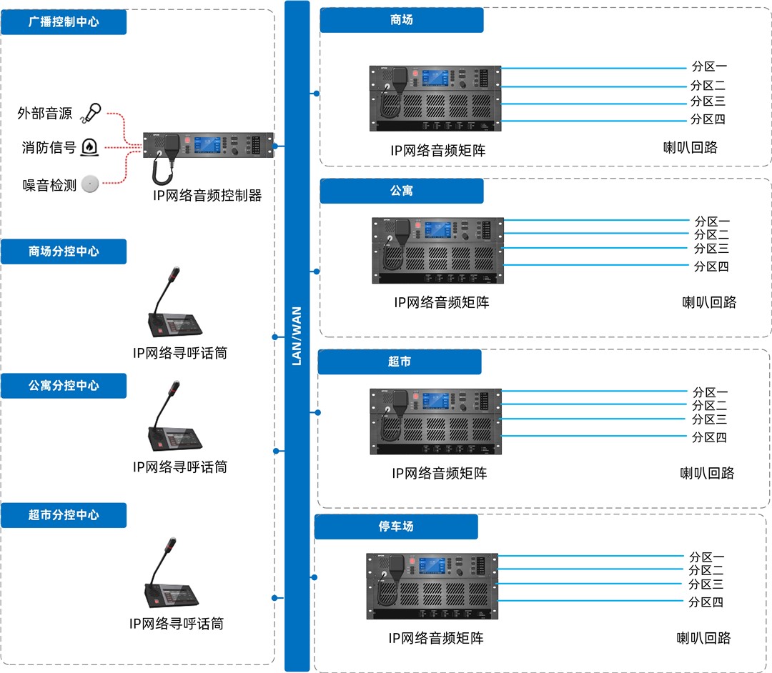 在高層建筑日益密集的現(xiàn)代城市中,公共廣播系統(tǒng)不僅僅是背景音樂的載體,更是火災(zāi)、地震等突發(fā)災(zāi)害面前的“生命通道”。然而,傳統(tǒng)的模擬廣播系統(tǒng)在應(yīng)對高層復(fù)雜環(huán)境時逐漸顯露出嚴重的滯后性,而基于TCP/IP架構(gòu)的網(wǎng)絡(luò)數(shù)字廣播系統(tǒng)則憑借其智能化聯(lián)動優(yōu)勢,正在重塑樓宇的安全防線。