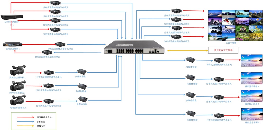 什么是KVM分布式系統(tǒng)? KVM分布式系統(tǒng)(Keyboard, Video, Mouse),是一種基于IP網(wǎng)絡架構的技術。不同于傳統(tǒng)模擬KVM受限于線纜長度和端口數(shù)量,分布式系統(tǒng)將音視頻信號和控制信號數(shù)字化,通過編解碼器(節(jié)點)在標準的千兆或萬兆網(wǎng)絡中傳輸。它將信號源(服務器/工作站)與操作端(顯示器/鍵鼠)在物理上徹底分離,構建了一個高度靈活的信息交互平臺。